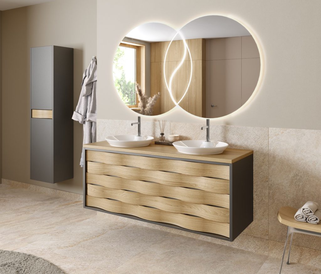 The Inseparables, mirrors with a very contemporary design, bring a warm and relaxing touch to the bathroom.