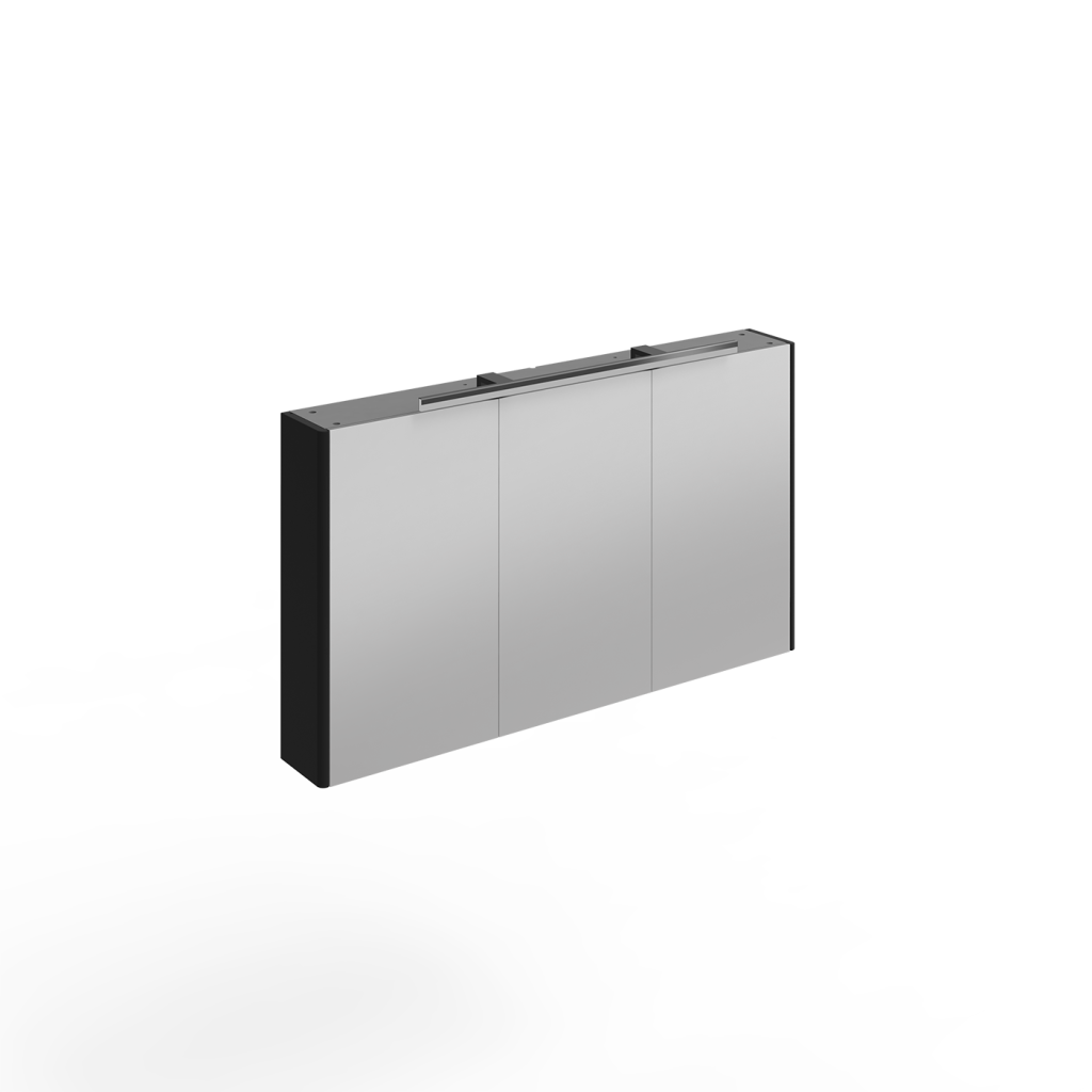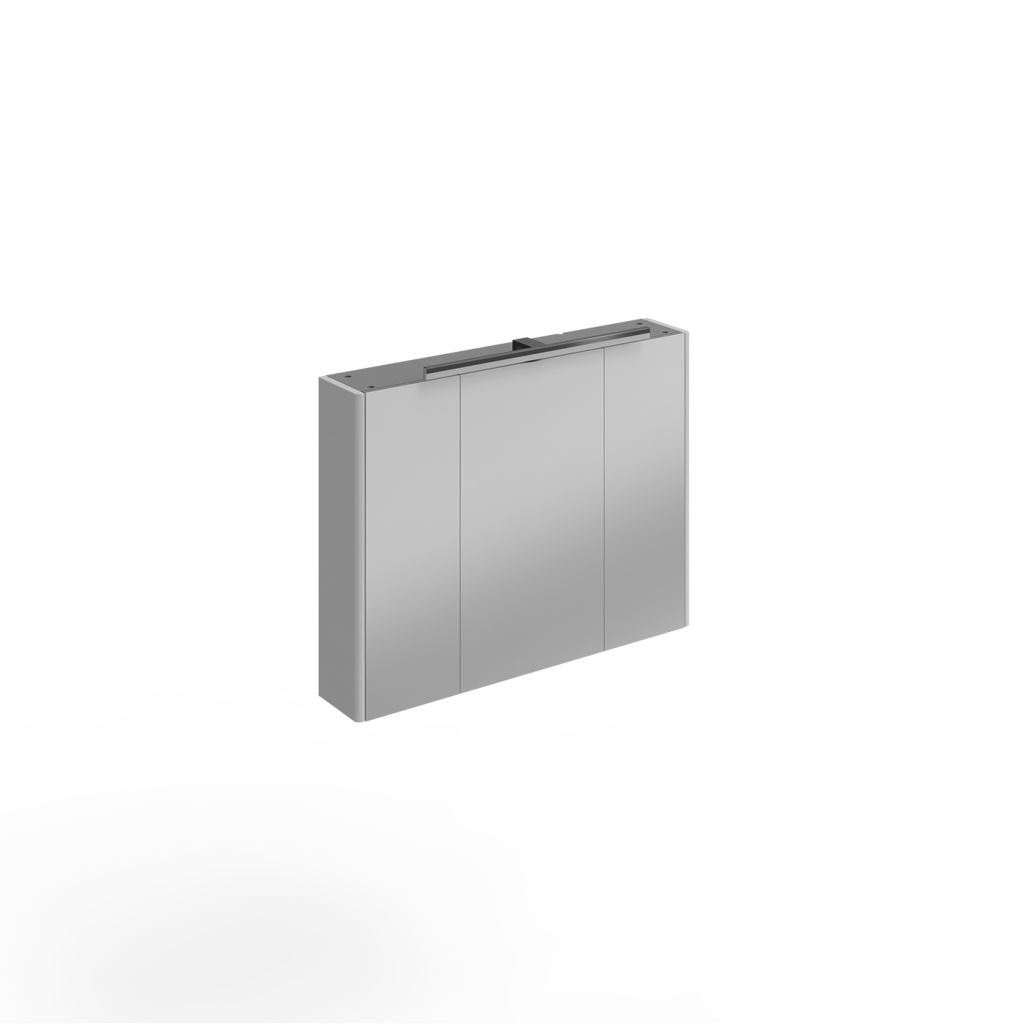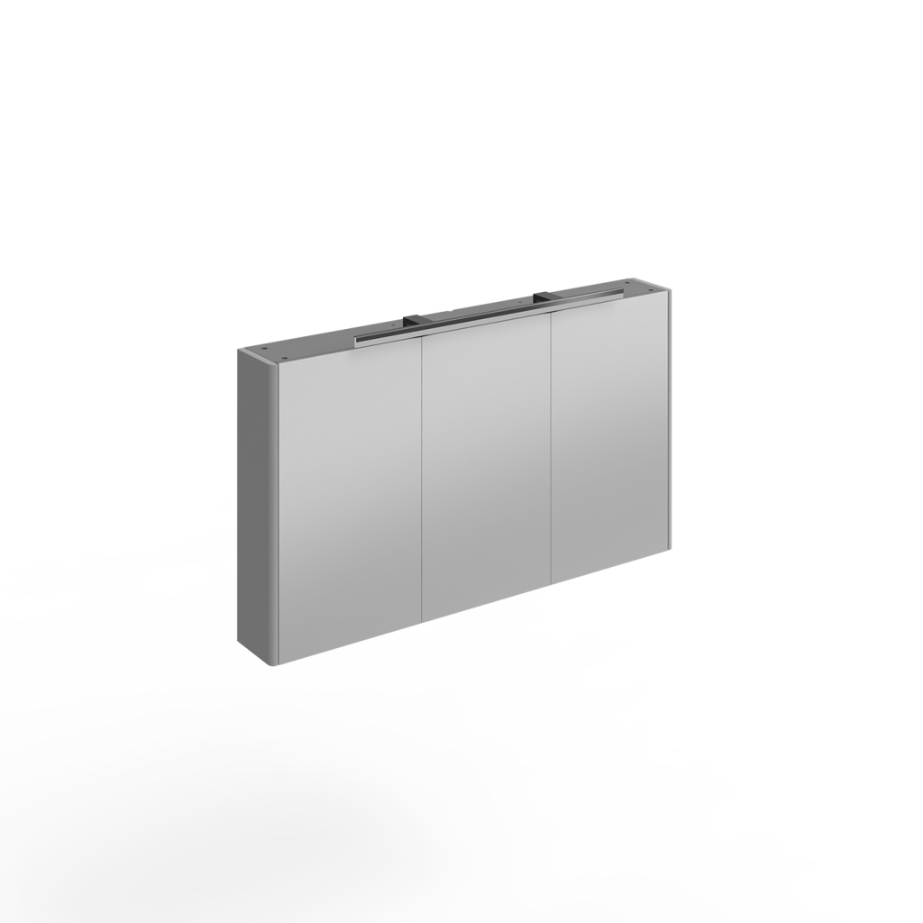 Triptych mirror cabinet L 120 – 6 adjustable glass shelves – Cubanite gray decor – Switch block, socket and USB ports – LED spotlight L 80 in glossy Chrome finish