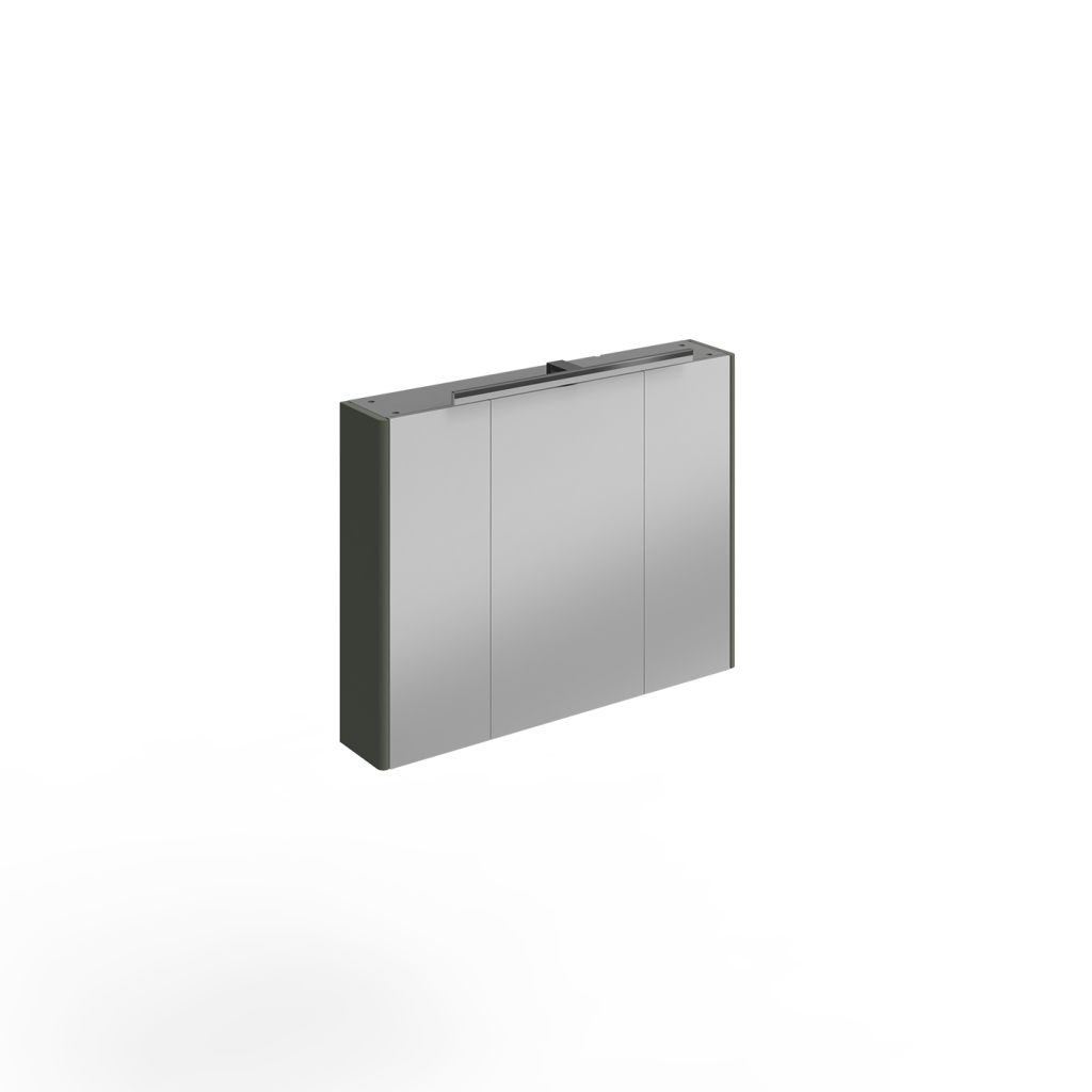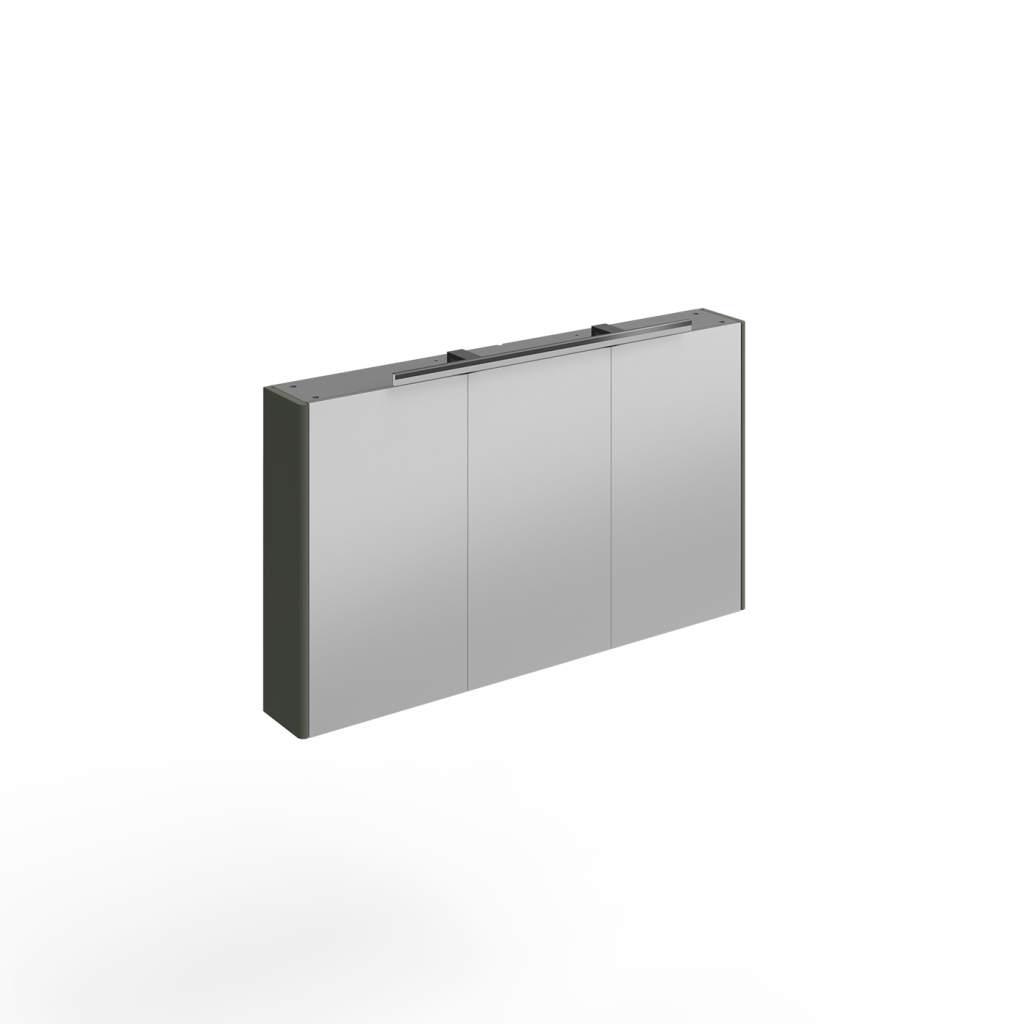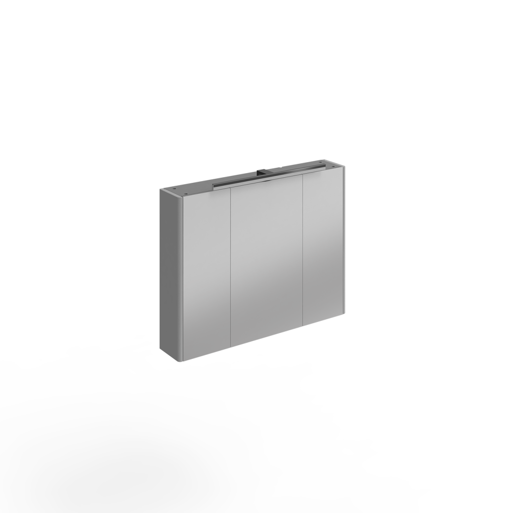 Triptych mirror cabinet L 120 – 6 adjustable glass shelves – Cubanite gray decor – Switch block, socket and USB ports – LED spotlight L 80 in glossy Chrome finish
